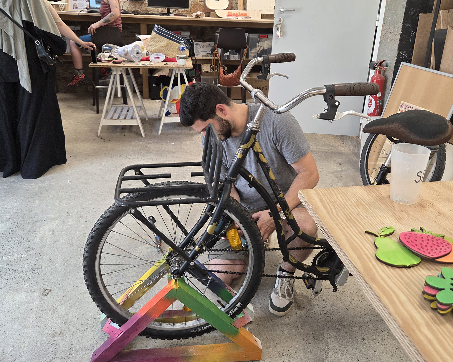 - Fabrication collective de l’équipement, utilisé lors d’événements pour créer des temps conviviaux et pédagogiques.