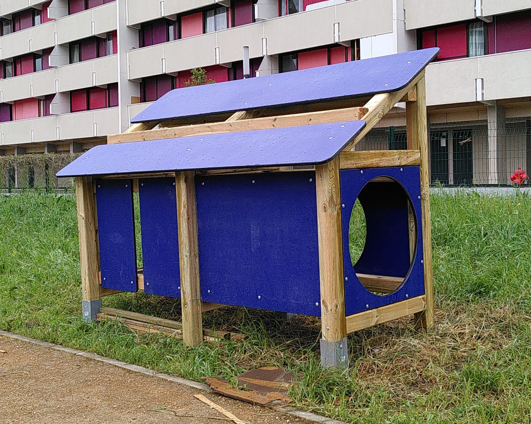 - Fabrication et installation collective des modules, favorisant l’appropriation du lieu et sa fréquentation.